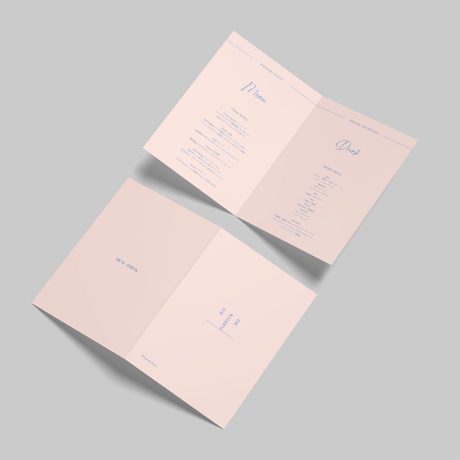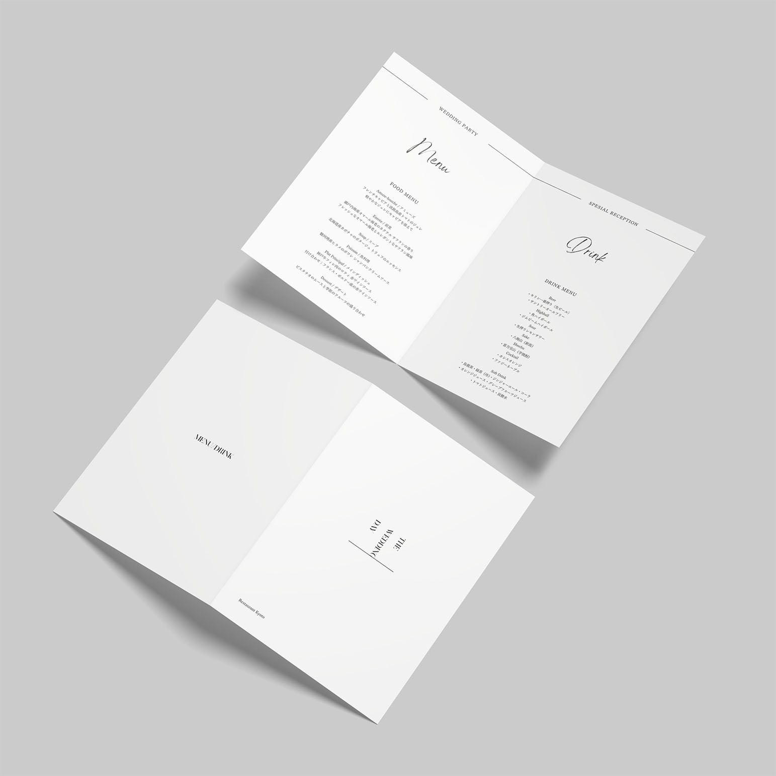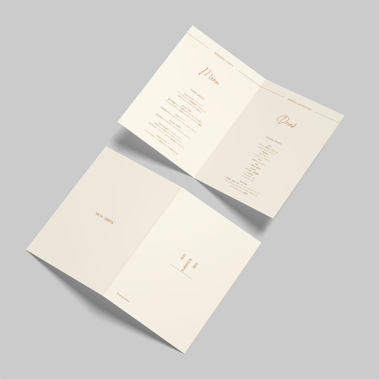 結婚式当日の料理内容を掲載する、オリジナルデザインのメニュー表です。